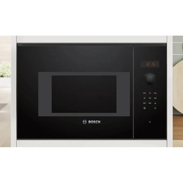 Die Einbau-Mikrowelle Bosch BFL523MB1F überzeugt mit schickem Design und umfangreichen Funktionen. Sie bietet 20 Liter Garraumvolumen und verfügt über eine Leistung von 800 Watt. Über den intuitiven Bedienknebel lassen sich fünf Leistungsstufen einstellen und mit 7 Automatikprogrammen bleiben für den Anwender keine Wünsche mehr offen. Daneben verfügt die BFL523MB1F über eine LED-Innenbeleuchtung und durch das Sichtfenster bleibt das Gargut immer im Blick. In puncto Sicherheit bietet die BFL523MB1F zudem eine Sicherheitsabschaltung und ein Kühlgebläse.Art.-Nr.: 100108107