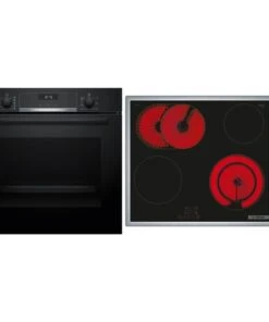 Das Herdset HBD631CS62 von Bosch überzeugt mit einem Backraumvolumen von 71 Litern und schickem Design. Das Set besteht aus dem Einbau-Herd HBG537BB3 und dem Elektro-Kochfeld PKN645BA2E. Sieben Heizarten machen das Kochen, Backen, Schmoren und Garen zu einer Leichtigkeit und die 3D Heißluft sorgt für perfekte Ergebnisse dank optimaler Wärmeverteilung auf bis zu drei Ebenen gleichzeitig. Reinigung und Pflege des Garraums gestalten sich dank der emaillierten Backofenwände besonders einfach. Das Elektro-Kochfeld mit Glaskeramik-Oberfläche und Edelstahl-Rahmen bietet vier Kochzonen, davon eine Bräterzone und eine auf 21 cm erweiterbare Zweikreis-Kochzone. In puncto Sicherheit überzeugt das Kochfeld des HBD631CS62 mit einer Restwärmeanzeige und der Backofen mit einer Kindersicherung und einem Kühlgebläse.Art.-Nr.: 100109895