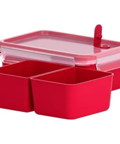 Emsa MICRO FAMILY Mikrowellentopf, Starterset 3-teilig, Dose (weiß/rot, 3 Töpfe, 3 Deckel)