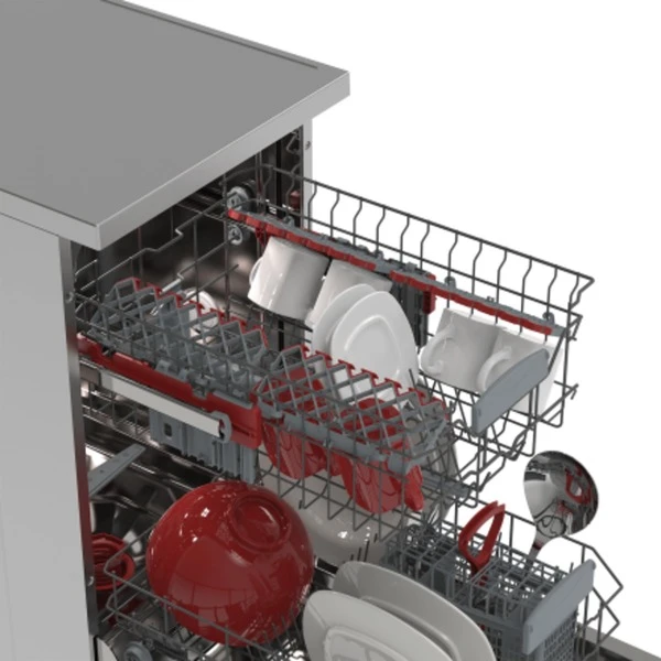 Der integrierbare Sharp Geschirrspüler QW-HS12S47ES-DE nimmt bis zu 10 Maßgedecke auf und bietet drei Spülprogramme. Das Express 50’-Programm spült das Geschirr bei 65°C in nur 50 Minuten blitzsauber. Mit der halben Beladung-Funktion spart man Energie und Wasser und mit der Startzeitvorwahl lässt sich der Start des Spülprogramms programmieren. Größere Kochutensilien wie Töpfe und Pfannen lassen sich dank der umklappbaren Ablagen im Unterkorb mühelos verstauen. Der AquaStop schützt vor Wasserschäden.Art.-Nr.: 1871138
