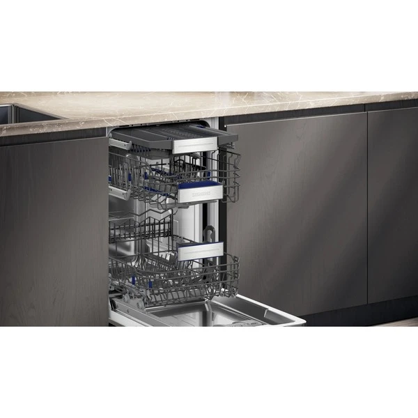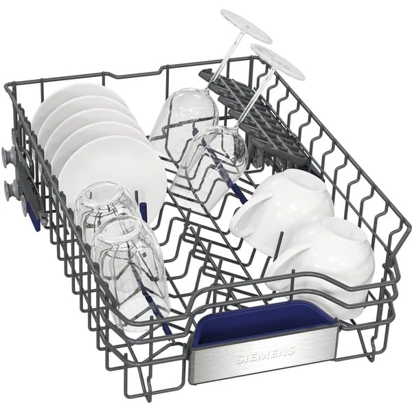 Der Siemens Geschirrspüler SR65ZX22ME nimmt bis zu 10 Maßgedecke auf. Zur Verfügung stehen sechs verschiedene Spülprogramme sowie vier Zusatzfunktionen. Die varioFlex Pro Körbe sowie die varioSchublade Pro lassen sich praktisch und komfortabel beladen. Die Automatikprogramme sorgen automatisch für beste Spülergebnisse und mit dem Favoritenprogramm können individualisierte Einstellungen mit nur einem Knopfdruck gestartet werden. Mit TimeLight wird die Restzeit des Spülvorgangs auf den Boden projiziert. Die Glasschutz-Technik sorgt für die schonende Behandlung von Gläsern und empfindlichem Geschirr und die Zeolith-Trocknen-Funktion verbessert die Trocknungsleistung. Das AquaStop-System schützt vor Wasserschäden. Dank der Home Connect-App ist der Geschirrspüler SR65ZX22ME auch über Handy oder Tablet steuerbar.Art.-Nr.: 100036005