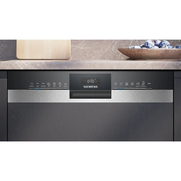 Der Siemens Geschirrspüler SX53ES02CE nimmt bis zu 14 Maßgedecke auf. Zur Verfügung stehen sechs verschiedene Spülprogramme sowie vier Zusatzfunktionen. Die Flex Körbe sowie die VarioSchublade lassen sich praktisch und komfortabel beladen. Die Automatikprogramme sorgen automatisch für beste Spülergebnisse und mit dem Favoritenprogramm können individualisierte Einstellungen mit nur einem Knopfdruck gestartet werden. Die Glasschutz-Technik sorgt für die schonende Behandlung von Gläsern und empfindlichem Geschirr und die autoOpen dry-Funktion verbessert die Trocknungsleistung durch automatische Türöffnung. Das AquaStop-System schützt vor Wasserschäden. Dank der Home Connect-App ist der Geschirrspüler SX53ES02CE auch über Handy oder Tablet steuerbar.Art.-Nr.: 100035669